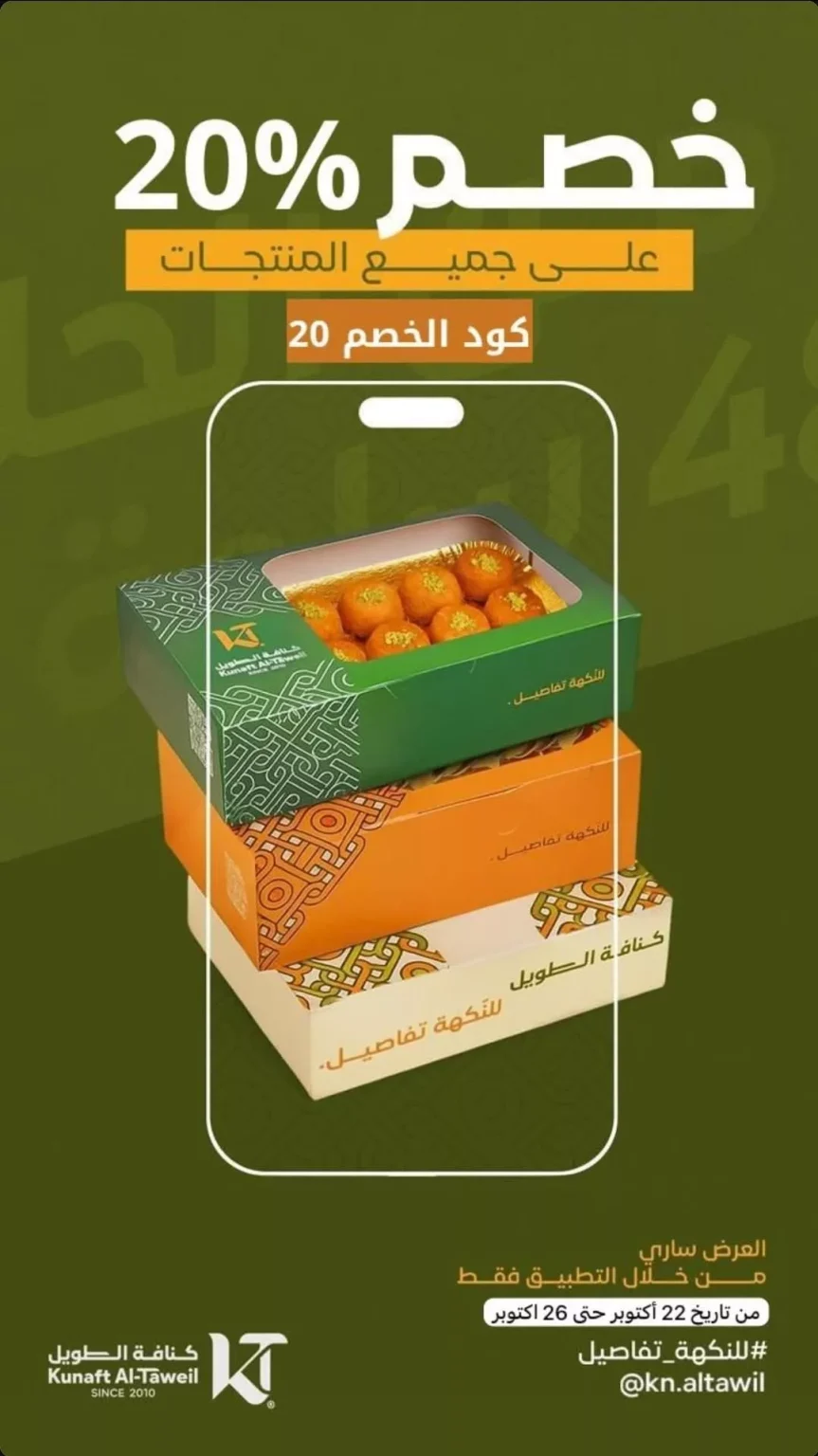 2 10 - خصم 20% مع تطبيق كنافة الطويل على جميع المنتجات حتى 26 أكتوبر2025