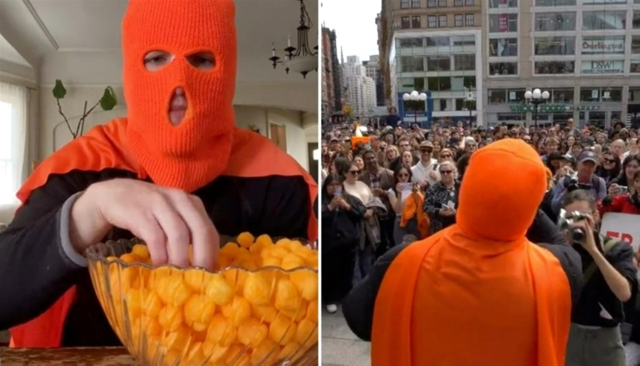 وكشف الرجل الذي يعرف باسم “cheeseballman427” على كل من إنستغرام وتيك توك عن الحدث في مارس (آذار) الماضي، وأقيم الحدث في 27 أبريل (نيسان) الماضي في حيّ يونيون سكوير ، في نيويورك، مرتدياً قناعاً برتقالياً.