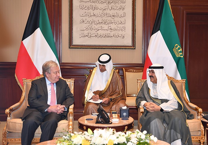استقبل صاحب السمو أمير البلاد الشيخ مشعل الأحمد، بقصر بيان صباح اليوم، الأمين العام للأمم المتحدة انطونيو غوتيريش والوفد المرافق وذلك بمناسبة زيارته للبلاد.
