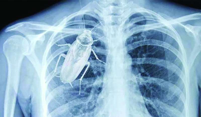 عثر الأطباء في أحد المستشفيات بولاية كيرالا الهندية على صرصور طوله 4 سم داخل رئة رجل يبلغ من العمر 55 عاماً، بعد أن اشتكى المريض من مشاكل تحدث له في التنفس.