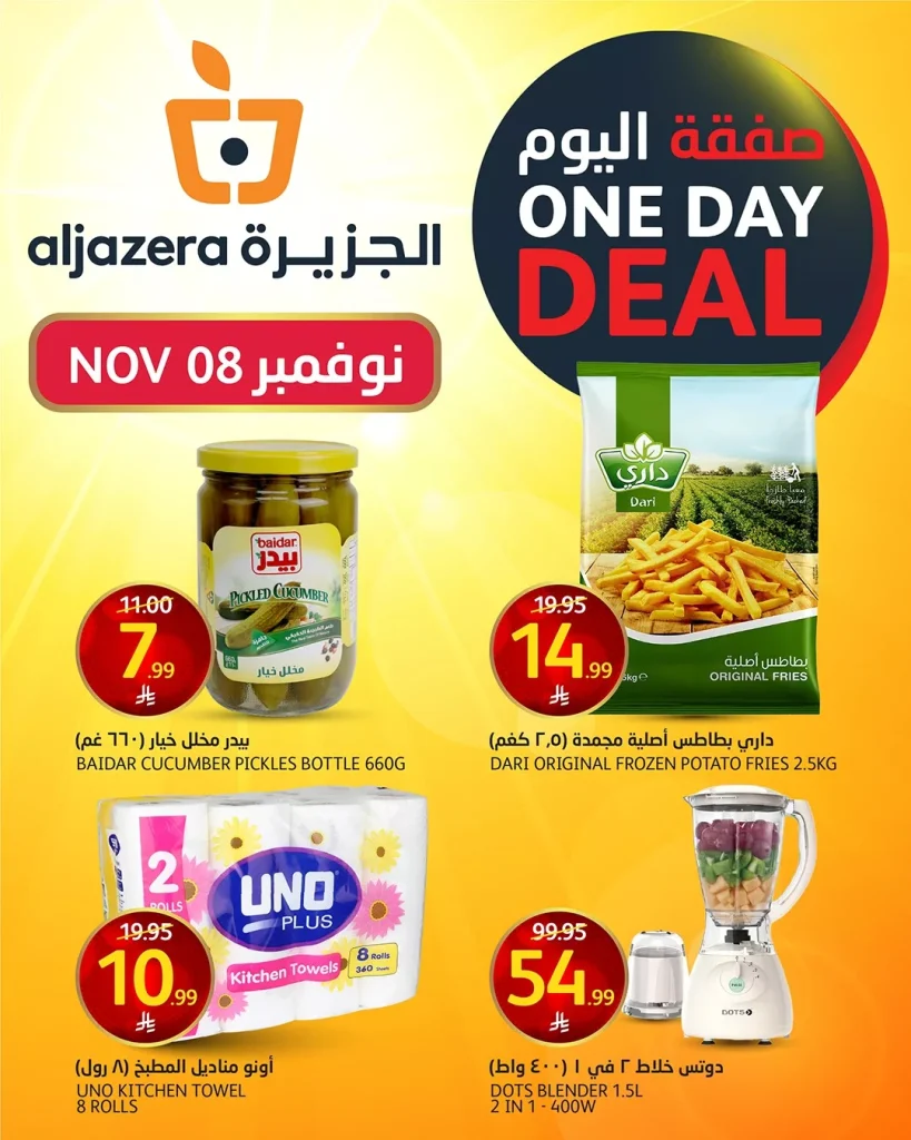 نستعرض لكم اليوم احدث عروض اسواق الجزيرة بتاريخ السبت 8-11-2025 و تشمل منتجات متنوعة من الغذائية و افضل المنظفات و تمتد العروض الي الاجهزة الكهربائية الاساسية في اي مطبخ وباقل الاسعار في عرض حصري متاح اليوم فقط تابعونا ليصلكم كل جديد عن عروض السعودية .