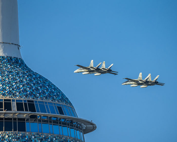 قدمت طائرات ومقاتلات القوة الجوية الكويتية بمشاركة وزارة الداخلية عرضا جويا في سماء البلاد عند ابراج الكويت بمناسبة الاحتفالات بالأعياد الوطنية تابعة جمهور غفير من مختلف الشرائح العمرية حيث نفذت الطائرات حركات استعراضية بمهارة فائقة.
