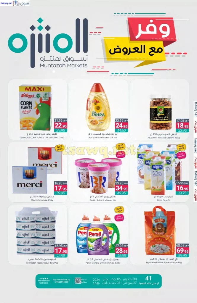 عروض أسواق المنتزه يوم الخميس 31 أكتوبر 2024 تتضمن تخفيضات مذهلة على مجموعة من المنتجات الغذائية الطازجة حيث تشمل الخضروات والفواكه إلى جانب اللحوم والدواجن ذات الجودة العالية و تشمل العروض كذلك الأرز والزيوت والحبوب مما يوفر ميزانية متوازنة للأسر الراغبة في شراء أفضل المنتجات بأسعار مناسبة.