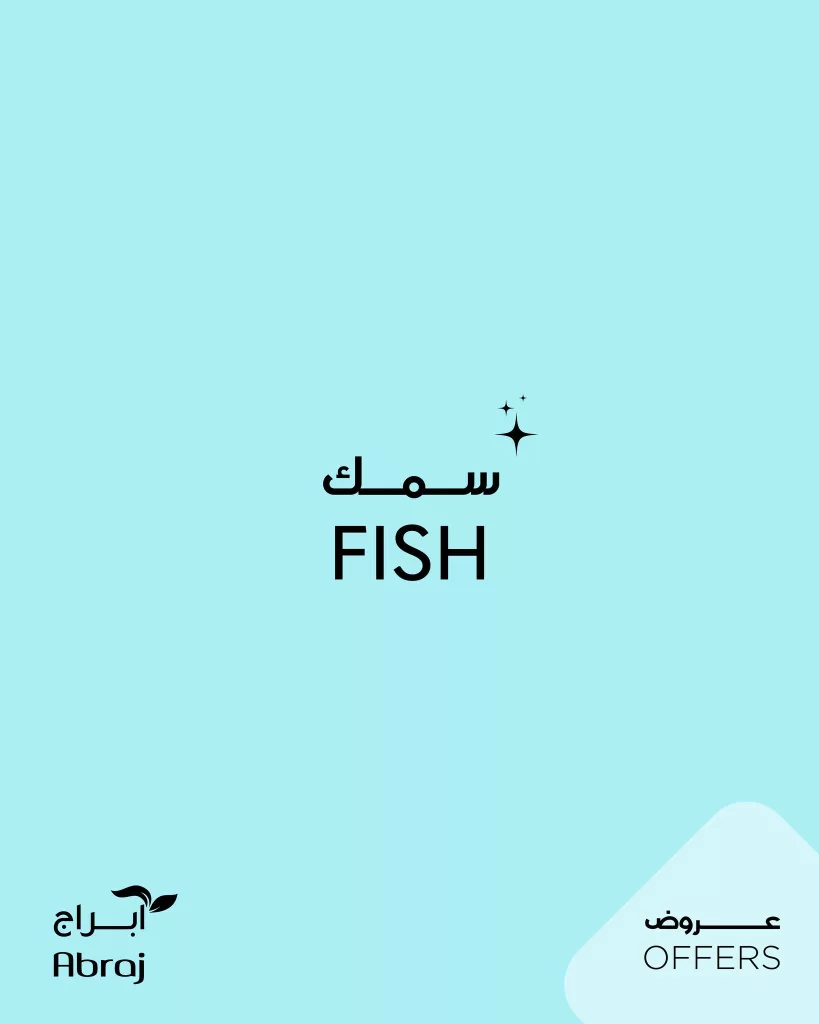 عروض ابراج هايبر ماركت مستمرة حتي الثلاثاء 13 يناير 2026 – 24 رجب 1447هـ و تحتوي علي تشكيلة من الاسماك منها شرائح السلمون الطازج مع الطماطم والثوم والفلفل والليمون والأعشاب والروبيان النظيف والروبيان المتبل والروبيان الصغير غير النظيف والسبيط الكبير والروبيان المتوسط وغيرها من الاصناف و باسعار مميزة