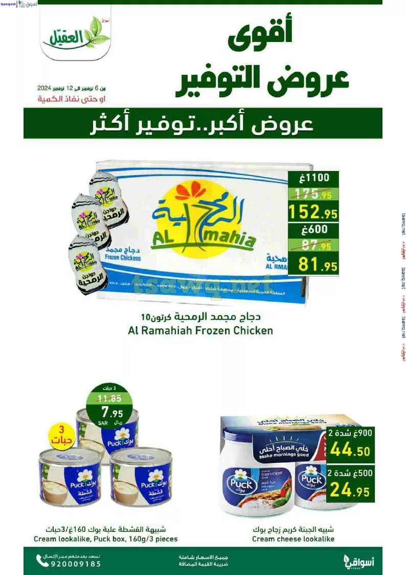 عروض اسواق العقيل حتي الثلاثاء 12-9-2024 و تشمل العديد من المنتجات الأساسية اليومية، وتتنوع لتلبي احتياجات الأسرة من الدواجن المجمدة والأجبان والألبان والمشروبات والمعلبات و تشمل العروض تخفيضات على مجموعة واسعة من المنتجات التي تتيح للأسر الاستفادة من أفضل الأسعار وجودة المنتجات المعروفة.