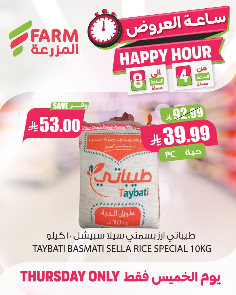 عروض اسواق المزرعة الخميس 17-8-1447هـ الموافق 5 فبراير 2026 و تحتوي علي تشكيلة من المنتجات المتنوعة و الاساسية في اي منزل و منها ارز بسمتي سيلا و قودي و زبدة الفول السوداني و ايضا بتوفر حدائق كاليفورنيا فوق مدمس و غيرها من المنتجات و باسعار مميزة في صفقة حصرية متاحة لساعات محدودة .