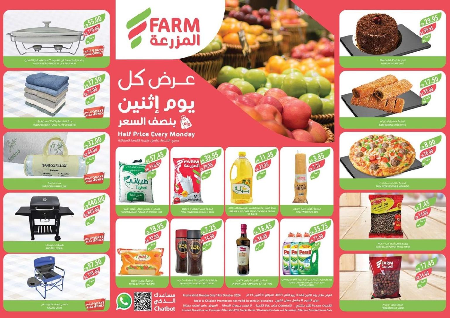 عرض أسواق المزرعة المنطقة الشرقية يتضمن تخفيضات على المنتجات الغذائية الأساسية مثل زيت الطهي والخبز الطازج بالإضافة إلى الحبوب والتمور كما يمكنك الاستمتاع بمنتجات العناية الشخصية مثل العسل الطبيعي وخل البلسميك الإيطالي
