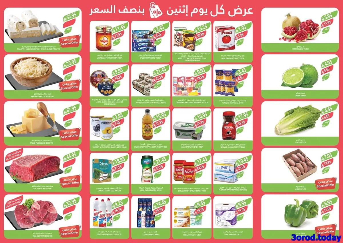 عرض أسواق المزرعة المنطقة الغربية الاثنين 29 سبتمبر 2025 تشمل الفواكه والخضار مثل الرمان واليقطين والليمون والخص والبطاطا الحلوة والفلفل الأخضر مع تشكيلة واسعة من الأجبان الإيطالية الشهية والجبن الموزاريلا المبشور والمشروبات المتنوعة والقهوة الفاخرة إضافة إلى منتجات الحليب والقشطة وباقل الاسعار المناسبة للجميع