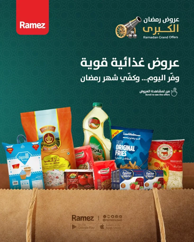 عروض اسواق رامز السعودية الرمضانية حتى 1 مارس 2026 عروض قوية تهز السوق قبل العيد من 25 فبراير لـ 1 مارس بجميع فروع رامز افضل العروض الرمضانية الكبرى على المواد الغذائية و اسعار منافسة لا تفوت قبل العيد لا تفوتوا افضل العروض المميزه