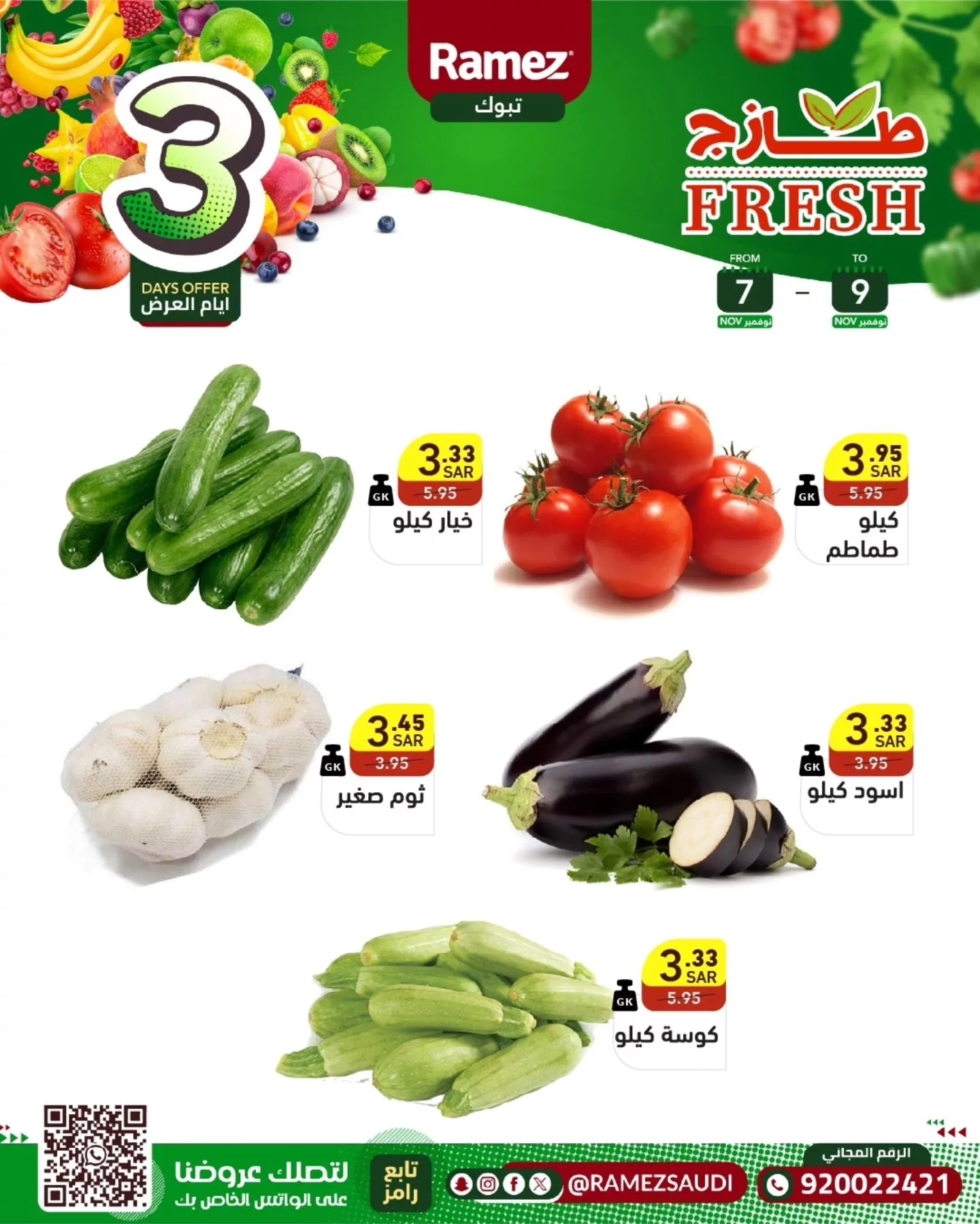 عروض اسواق رامز السعودية الخميس 7 نوفمبر 2024 تقدم تشكيلة واسعة من المنتجات الطازجة والمتنوعة التي تلبي كافة احتياجات الأسرة السعودية حيث تجد أفضل الأسعار على الخضروات والفواكه الطازجة من مختلف الأنواع بالإضافة إلى العروض المميزة على أنواع مختلفة من اللحوم والدواجن