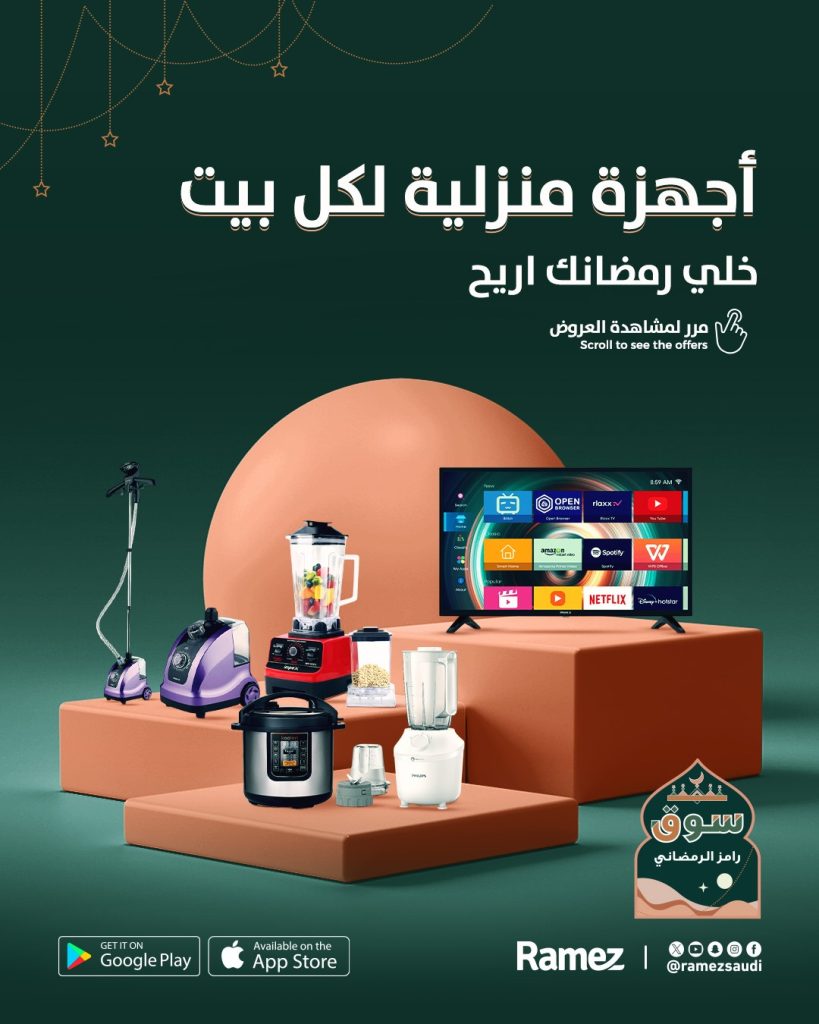 أجهزة منزلية لكل بيت عروض رامز تقدم لك الأفضل بسعر أوفر العرض ساري من 4 حتى 8 فبراير 2026 فقط في جميع فروع اسواق رامز في المملكة لحقو التوفير