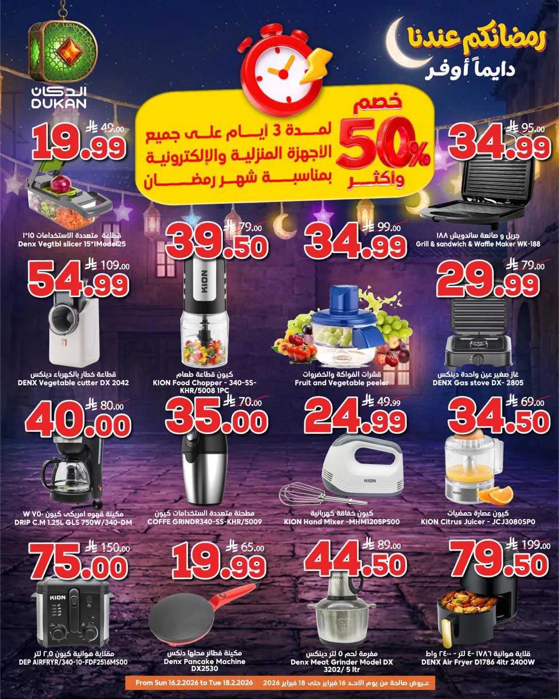 عروض الدكان جدة الاحد 15 فبراير 2026 الموافق 27 شعبان 1447هـ و تحتوي علي الأجهزة المنزلية كالقلايات الهوائية ومحضرات الطعام وقطاعات الخضروات وصانعة الساندوتش