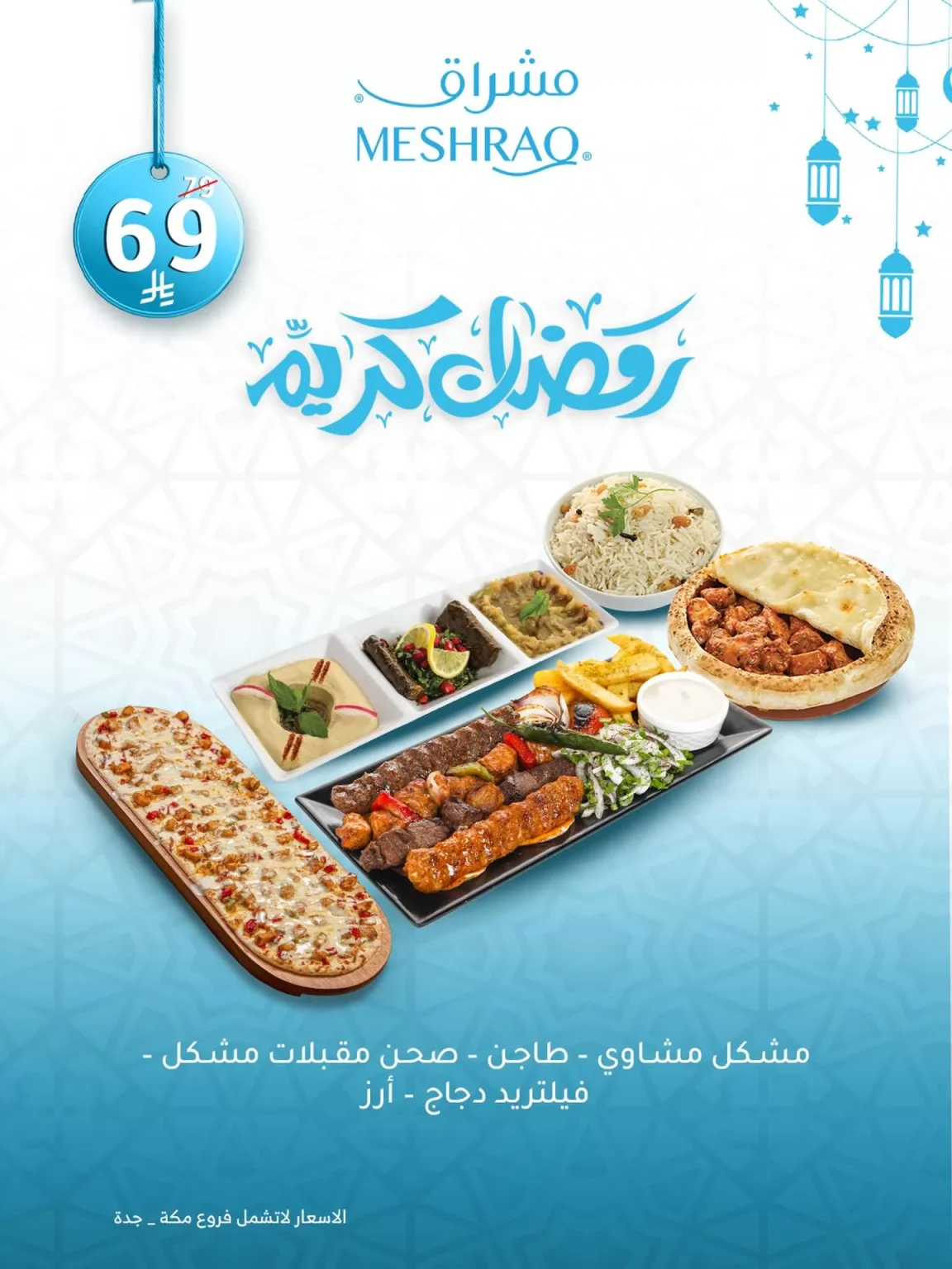 شاركها فيسبوك تويتر لينكدإن بينتيريست تيلقرام البريد الإلكتروني عروض الافطار في شهر رمضان المبارك من مطعم مشراق نقدم لكم عرض مشكل مشاوي وطاجن و صحن مقبلات مشكل و فلتريد دجاج وارز بسعر 69 ريال فقط لا تفوتوا افضل العروض الرمضانية في مطعم مشراق في جميع الفروع طيلة شهر رمضان المبارك