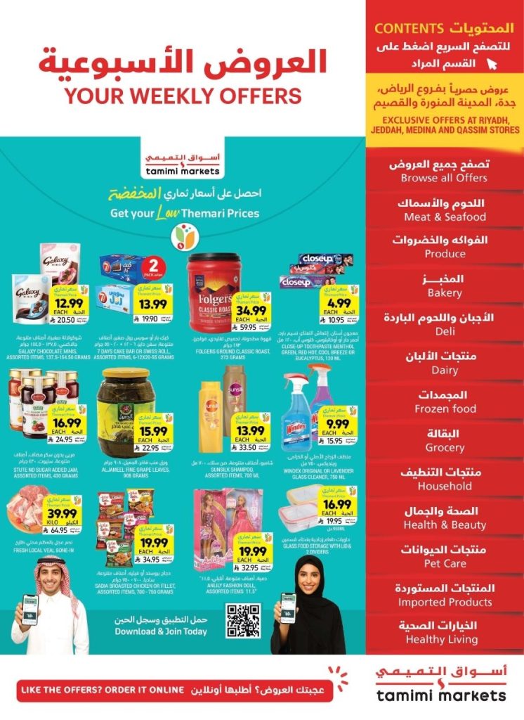 عروض التميمي الأسبوعية الأربعاء 3/12/2025 تبدأ بالأجهزة مثل مكنسة كهربائية وسخان ماء وخلاط يدوي ومحضر عجين وجهاز تسخين ساندويتش ثم تضم الأغذية الجزر والطماطم واليوسفي والتوت الأحمر وشرائح اللحم والجمبري المقشر والزبادي ابقوا معنا ليصلكم كل جديد عن عروض العثيم الرياض و غيرها من الشركات منها عروض بنده و عروض نستو بجميع فروعها و اسواق التميمي ايضا .