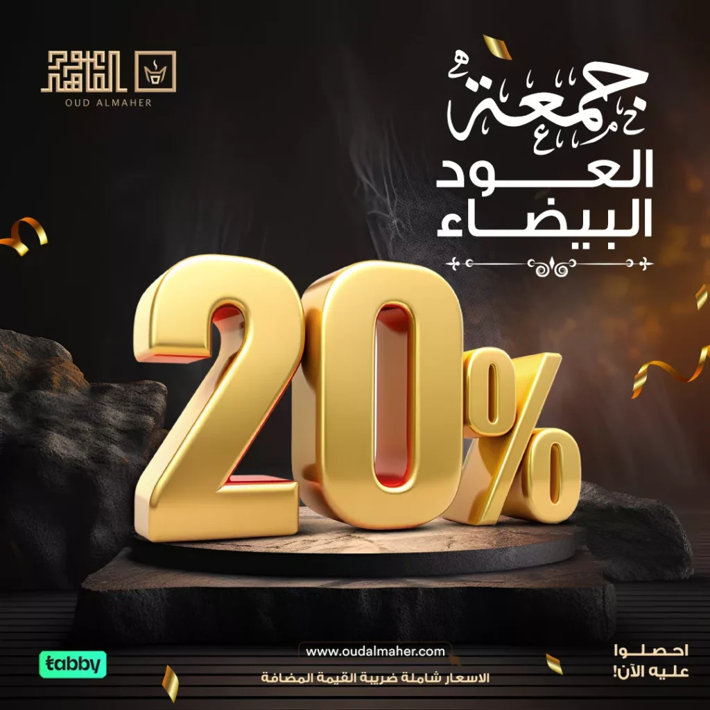 عروض عود الماهر بمناسبة تخفيضات الجمعة البيضاء 2024 تقدم لمحبي العطور الفاخرة فرصة استثنائية للاستمتاع بخصومات مميزة تصل إلى 20% على تشكيلة متنوعة من عطور العود المميزة مع التصاميم الرائعة والجودة العالية التي تشتهر بها منتجات عود الماهر