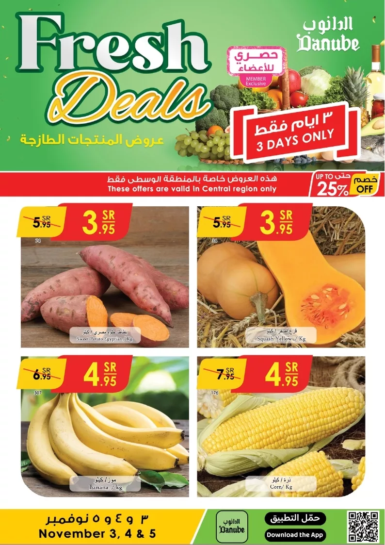 عروض الدانوب الرياض تأتي بمجموعة متميزة من المنتجات الطازجة حيث توفر للعملاء تشكيلة من الفواكه والخضروات بأسعار مغرية وخصومات تصل حتى 25% مع اهتمام خاص بالجودة العالية وتقديم منتجات محلية ومستورد بأسعار تنافسية يمكن للمتسوقين الاستمتاع بفرصة الحصول على بطاطا حلوة مصرية