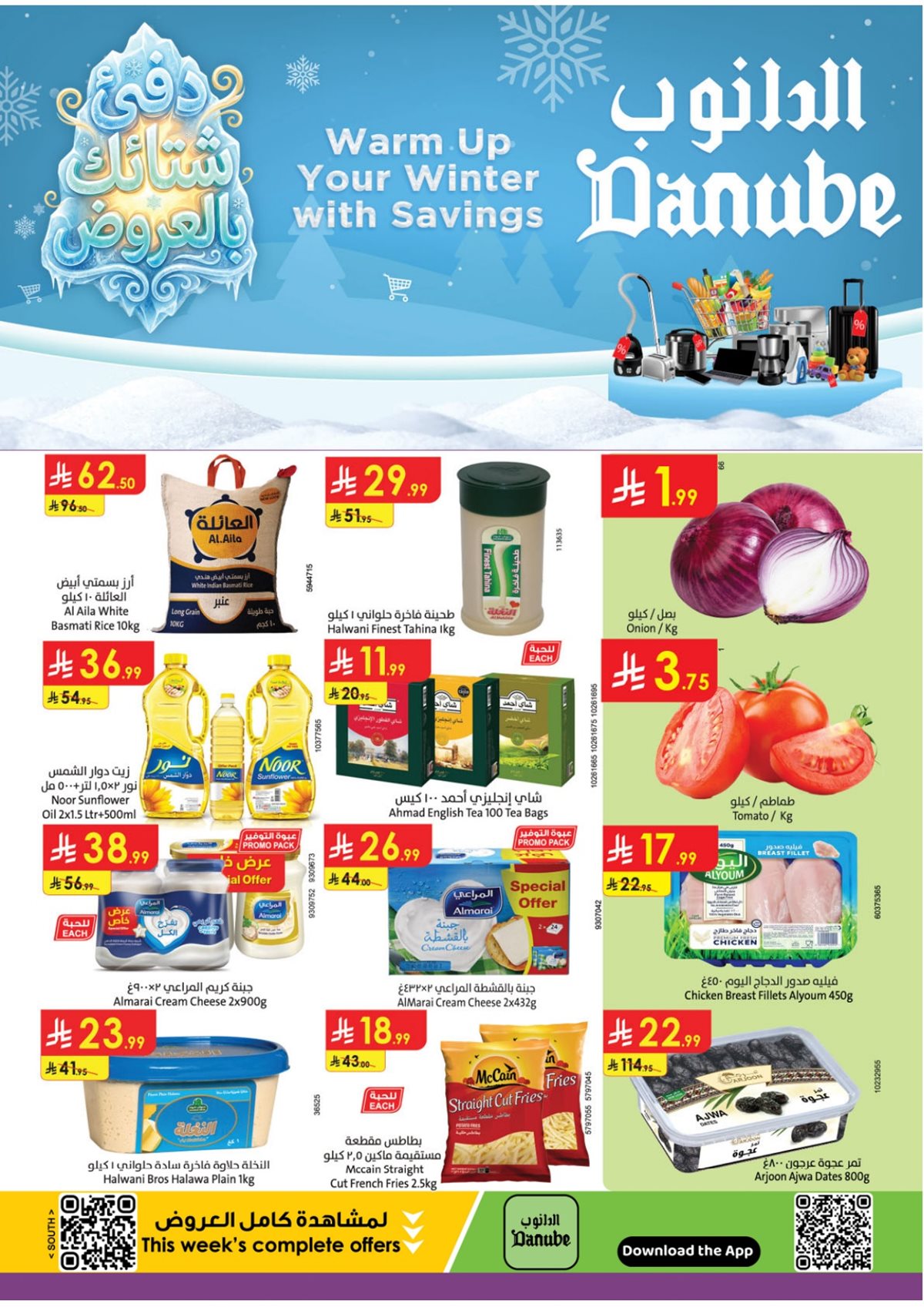 عروض الدانوب جازان الأربعاء 24 ديسمبر 2025 تبدأ بالأجهزة مثل قدر طهي ومروحة مطبخ وسخان ماء وصينية فرن وميزان مطبخ رقمي ثم تضم الأغذية الملوخية الطازجة والبصل الأخضر والليمون البلدي والموز والتمر وزيت السمسم والسكر الناعم ودبس القصب باقل الاسعار المناسبة للجميع .