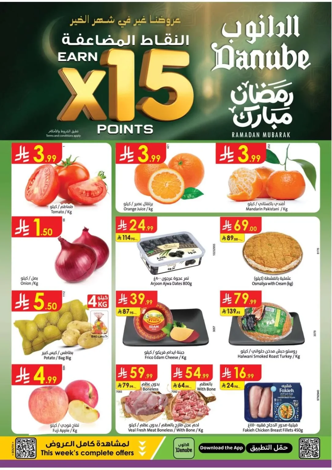 عروض الدانوب خميس مشيط الأربعاء 1 رمضان 1447هـ تبدأ بالمواد الغذائية مثل زبدة الفول السوداني والعسل الطبيعي واللحم البلدي والقهوة العربية والتمور والخضروات والفاكهة والأجبان المحلية والدقيق
