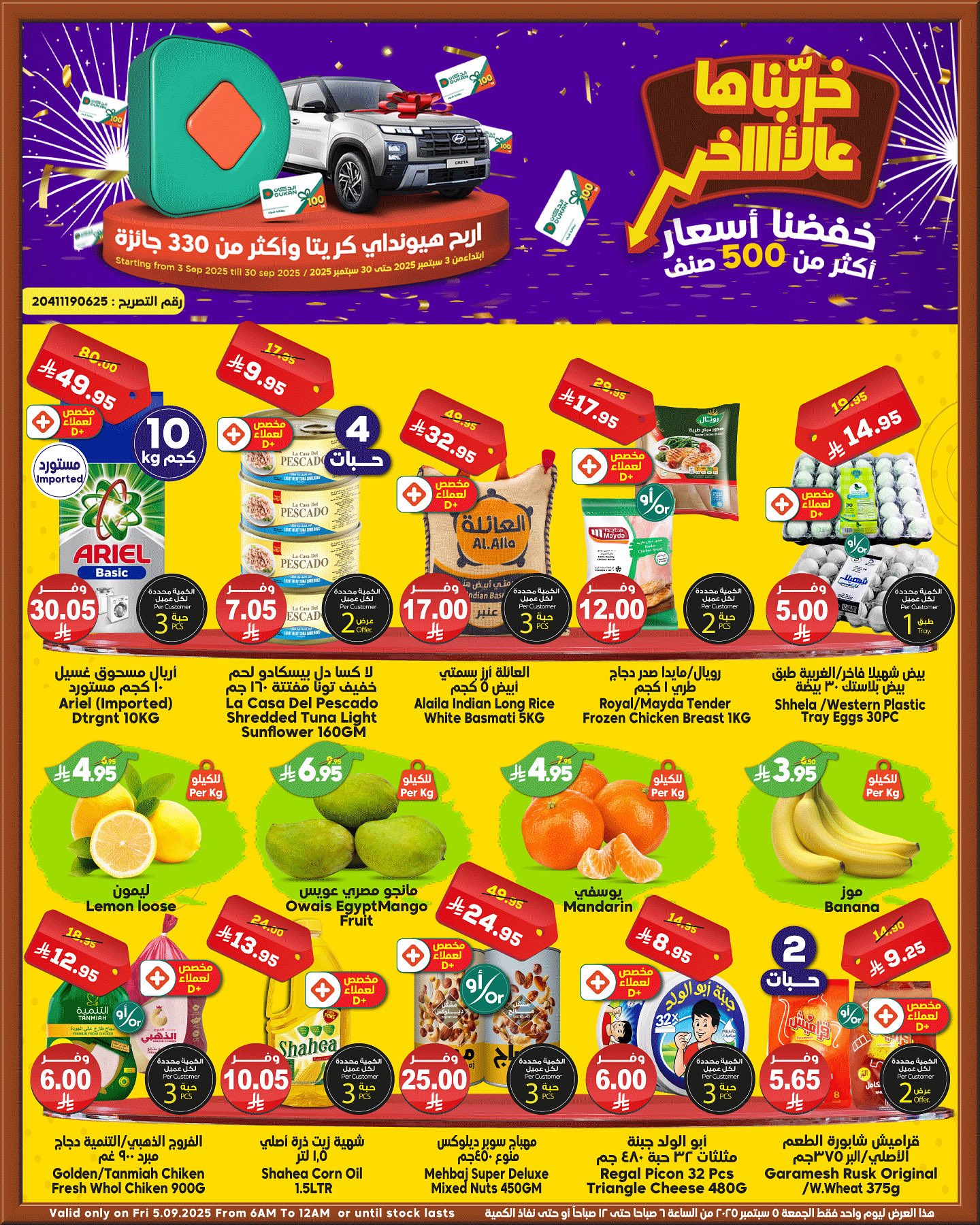 يستمر هذا العرض ليوم واحد فقط يوم الجمعة 5 سبتمبر 2025 من الساعة 6 صباحًا وحتى 12 منتصف الليل أو حتى نفاد الكمية