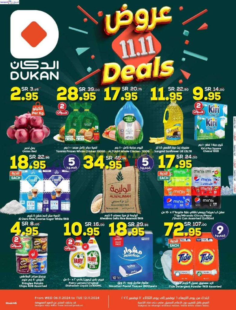 عروض الدكان جدة الأسبوعية الخميس 7 نوفمبر 2024 تقدم تخفيضات على الفواكه الطازجة والخضروات الموسمية، إلى جانب العروض الخاصة على اللحوم الطازجة والدواجن. كما تتوفر خصومات على منتجات الألبان، وأيضًا على الإلكترونيات مثل الشواحن اللاسلكية وسماعات الرأس، لتجربة تسوق مميزة.