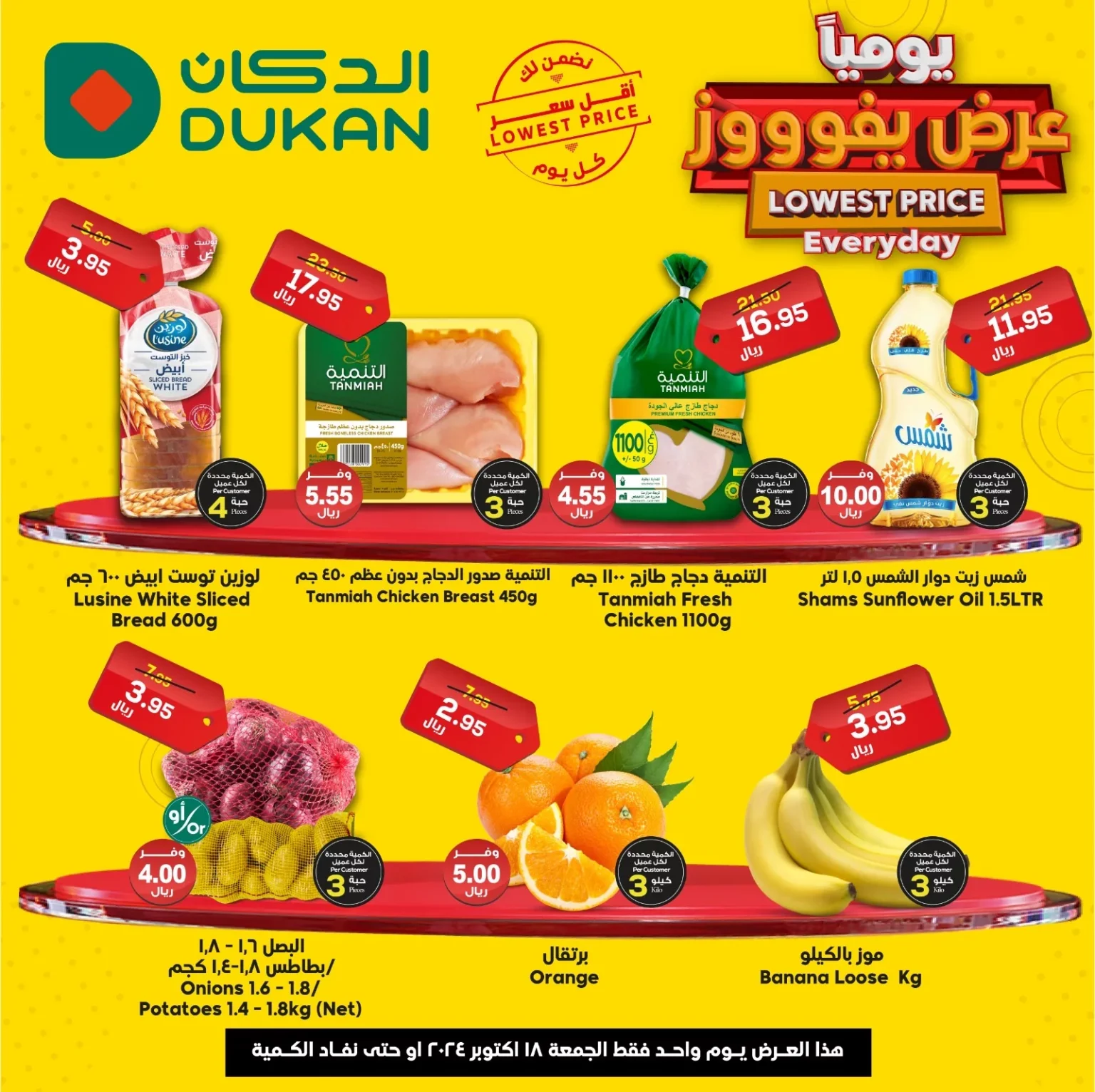 عروض الدكان جدة ليوم الجمعة 18 أكتوبر 2024 تشمل تخفيضات متنوعة على مجموعة كبيرة من المنتجات الغذائية الأساسية و تشمل هذه العروض الخبز و الدجاج الطازج و وزيت دوار الشمس الذي يتم تقديمه بأسعار مخفضة لتلبية احتياجات الأسرة اليومية. تتيح هذه العروض فرصة للمستهلكين للحصول على احتياجاتهم الأساسية بأسعار مميزة