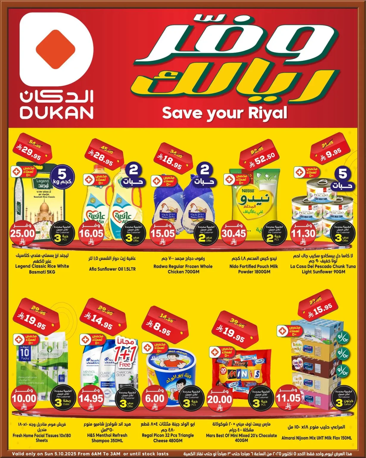 عروض الدكان جدة الأحد 5/10/2025 تقدم تشكيلة واسعة من السلع الأساسية وتشمل الأرز الأبيض الكلاسيكي وزيت دوار الشمس والدجاج المجمد بالإضافة إلى الحليب البودرة والتونة المعلبة وتضم كذلك منتجات الألبان والعصائر ومنتجات العناية الشخصية والمناديل الورقية باقل الاسعار المناسبة للجميع فقط ابقوا معنا ليصلكم كل جديد