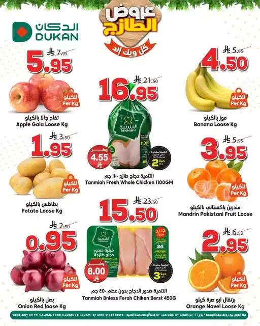 عروض الدكان ليوم الجمعة فقط 9 يناير 2026 خربناها على الآخــــر منتجات مختارة و عروض الطازج ضمن تخفيضات نهاية الاسبوع و فيها منتجات لا تفوت من الخضار و الفواكه و منتجات الطازج والفريش و ايضا المعلبات لا تفوتوا التوفير الكبير العرض ليوم واحد فقط الجمعه 9 يناير 2026 من الساعة ٦ صباحاً أو لحين تنفد الكمية