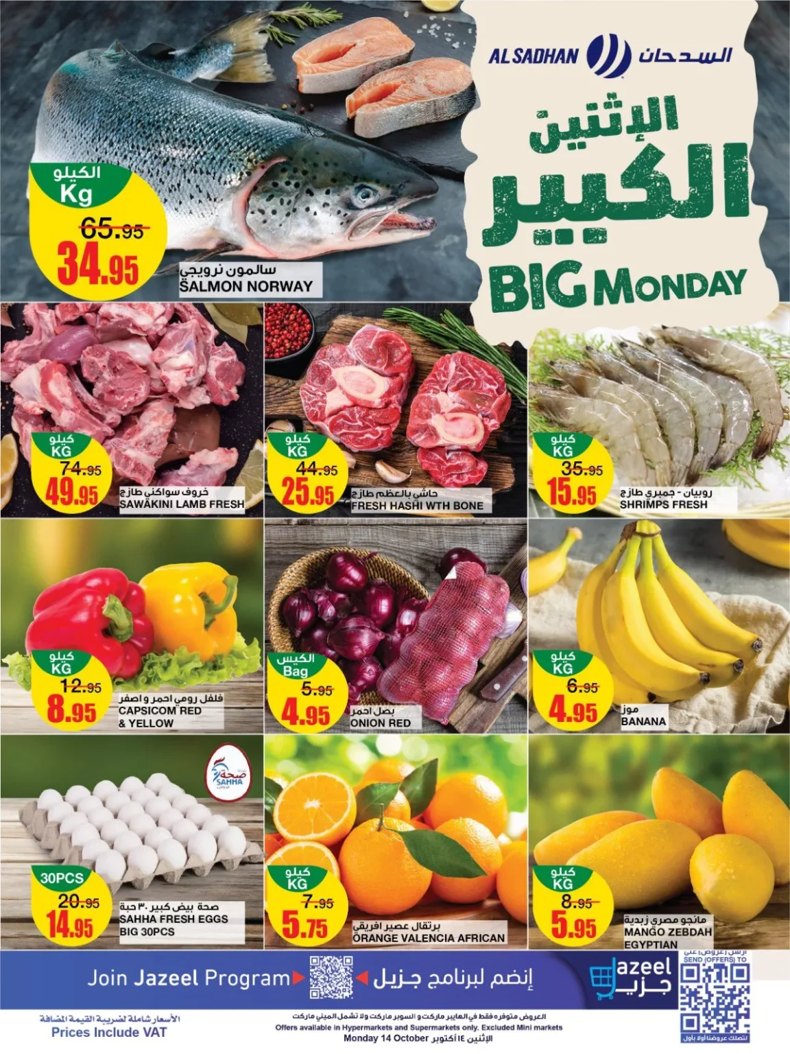 عروض السدحان الاثنين الكبير تشمل أيضا خصومات على الخضروات والفواكه الطازجة مثل الفلفل الرومي و الموز والبرتقال إلى جانب البيض والعديد من المنتجات الاستهلاكية الأساسية و تشمل أيضا الأجهزة المنزلية مثل الميكرويف والغلاية بأقل التكاليف.