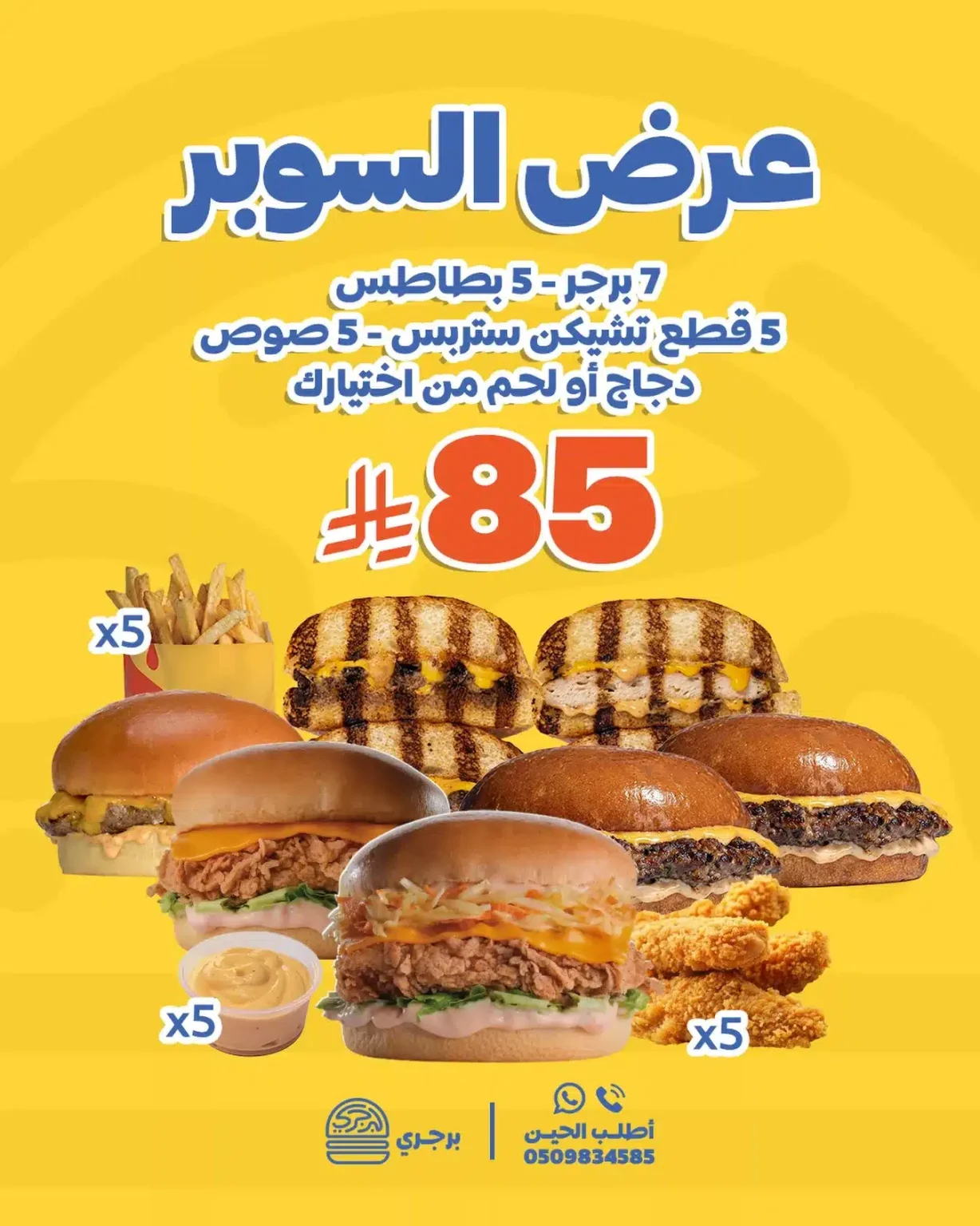 - سعر عرض السوبر من مطعم برجري بـ 85 ريال سعودي
