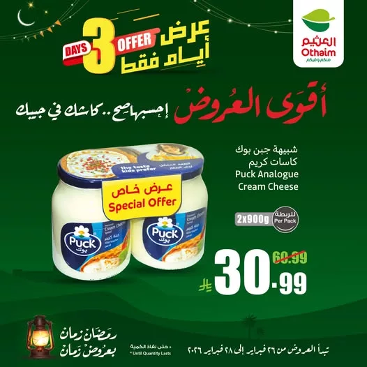 عروض العثيم الخاصة لمدة 3 ايام فقط من 26 حتى 28 فبراير 2026 نقدم لكم افضل العروض بمناسبة شهر رمضان المبارك في اسواق العثيم التي عودتنا دائما على العروض المميزه و الاسعار المنافسة ضمن جميع الفروع في المملكة.
