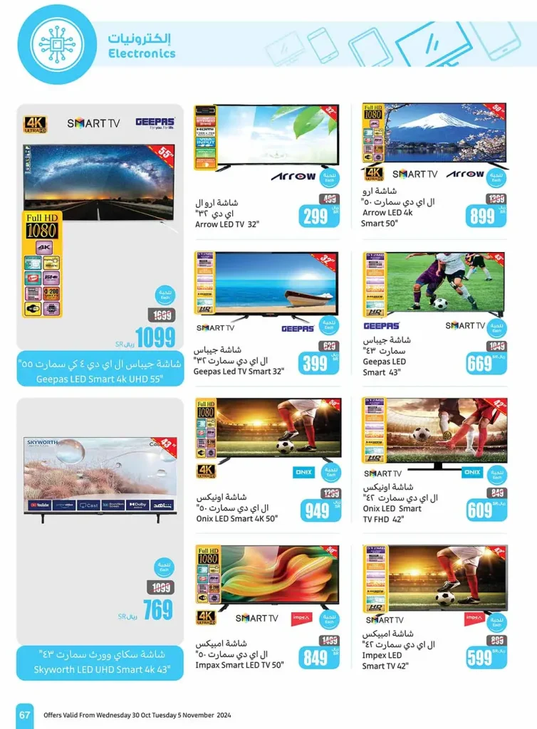 - شاشة أرو إل إي دي 32 بوصة: 299 ريال سعودي