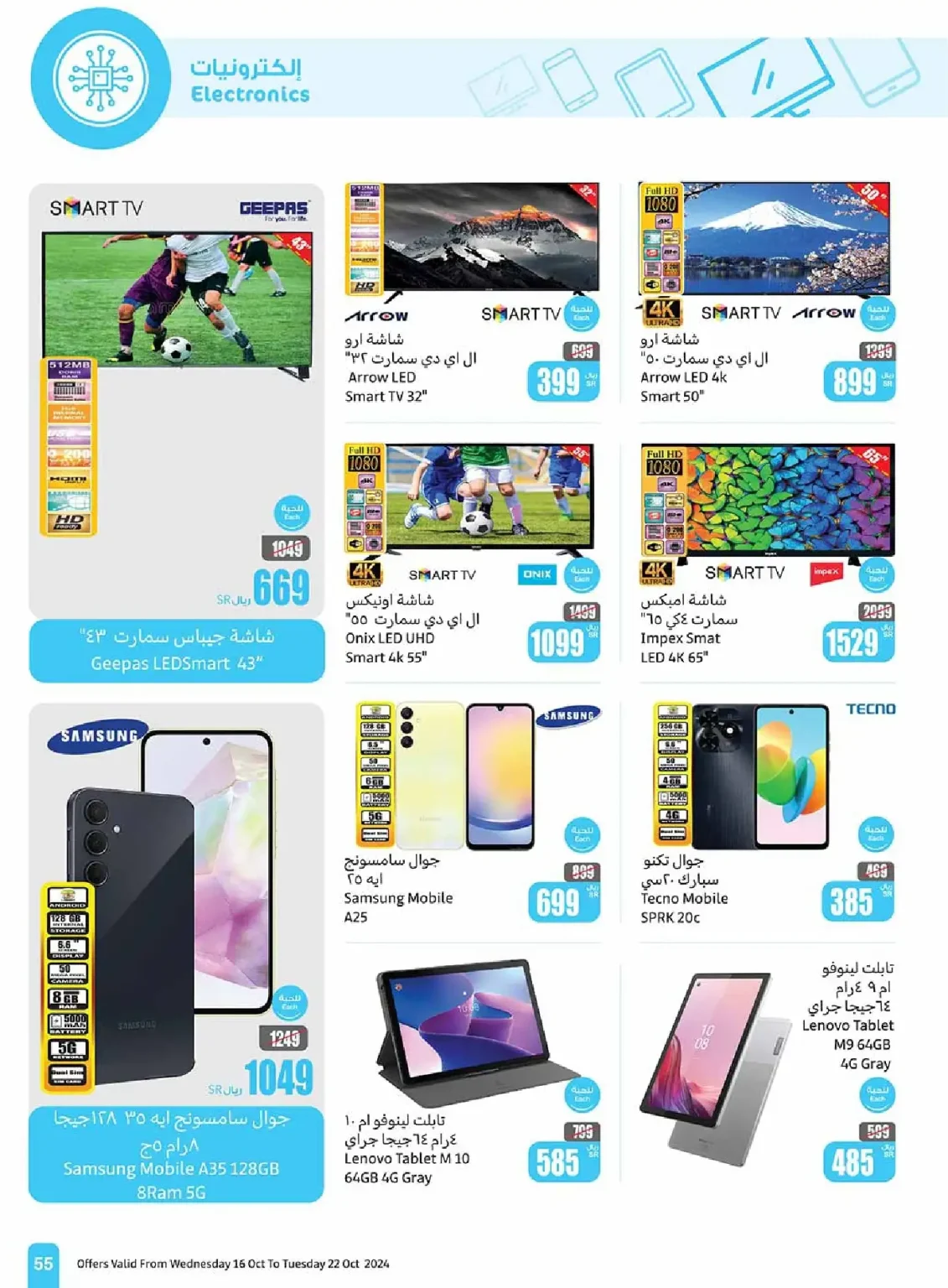 • شاشة أونيكس سمارت 55 بوصة 4K: 1099 ريال سعودي