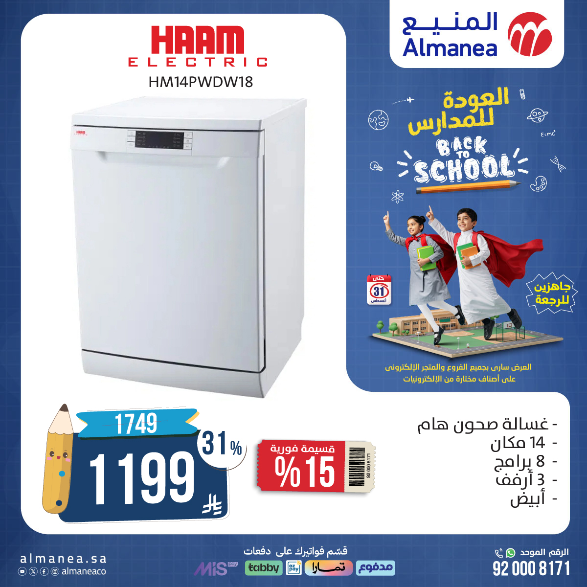 - غسالة صحون هام 14 مكان – 1199 ريال (بدلاً من 1749 ريال)