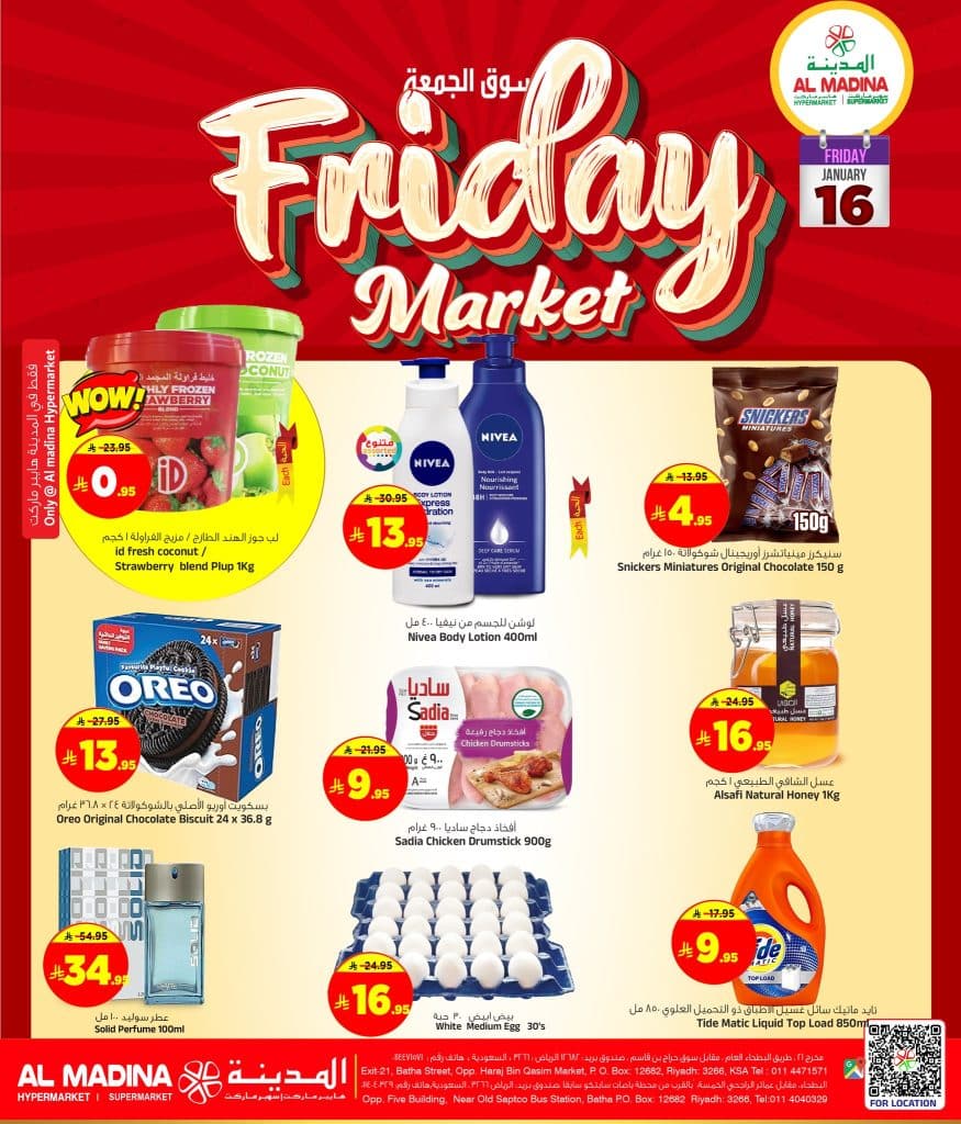 عروض المدينة هايبر ماركت ليومين 16 – 17 يناير 2026 تخفيضات الويكند افضل العروض الحصرية في اسواق المدينة ضمن عروض تسوق الجمعة المذهلة على منتجات متنوعة غذائية و الكترونيات و هدايا متنوعة يسري العرض يومي الجمعة و السبت 16 و 17 يناير 2026
