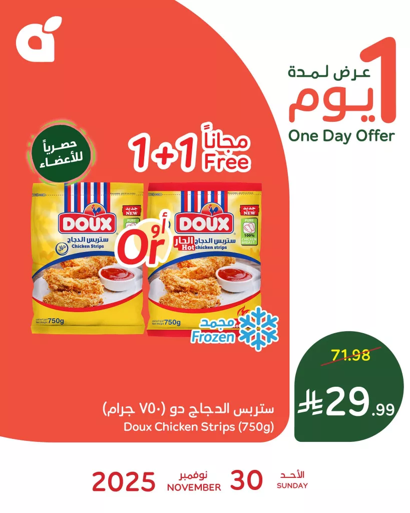 نقدم لكم اليوم احدث عروض بنده الاحد 30 نوفمبر 2025 و تحتوي علي ستربس الدجاج دو في عرض حصري متاح اليوم فقط و يمكن الاستفادة ايضا من عرض 1+1 مجانا كما ان موقعنا بيوفر كمان عروض بنده الطازج و بتشمل جميع فروع المملكة و بتحتوي علي خضروات و فواكه و لحوم طازجة بارخص الاسعار متاحة اليوم فقط ايضا تابعونا .