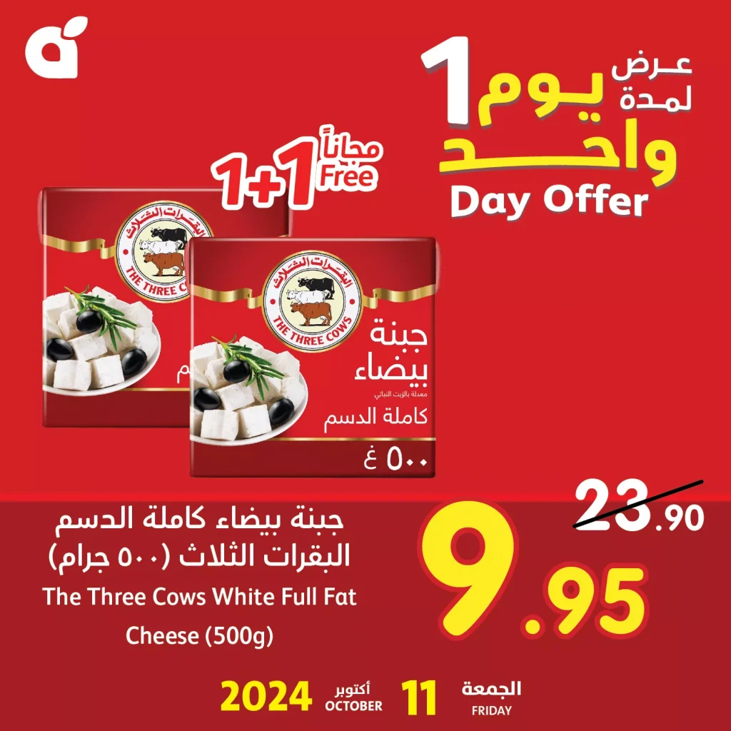 عروض بنده الجمعة 11 أكتوبر 2024 توفر فرصة رائعة للاستفادة من الخصومات الفورية على مجموعة متنوعة من المنتجات الغذائية و العرض يتضمن منتجات الأجبان الشهية مثل جبنة الثلاث أبقار كاملة الدسم والتي تأتي بوزن 500 جرام. هذه العروض تأتي ضمن حملة اشتري واحدة واحصل على الثانية مجانا