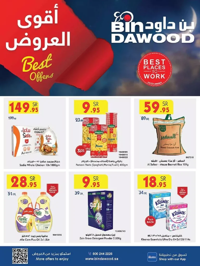 عروض بن داود المدينة المنورة الأسبوعية تقدم تخفيضات على المنتجات الأساسية مثل الأرز و الدقيق وزيت الطهي بجانب عروض على المكسرات والشوكولاتة أيضا تتوفر خصومات على الأجهزة المنزلية الصغيرة مثل المكواة وأجهزة تحضير الطعام لتجربة تسوق اقتصادية وشاملة لجميع الاحتياجات اليومية