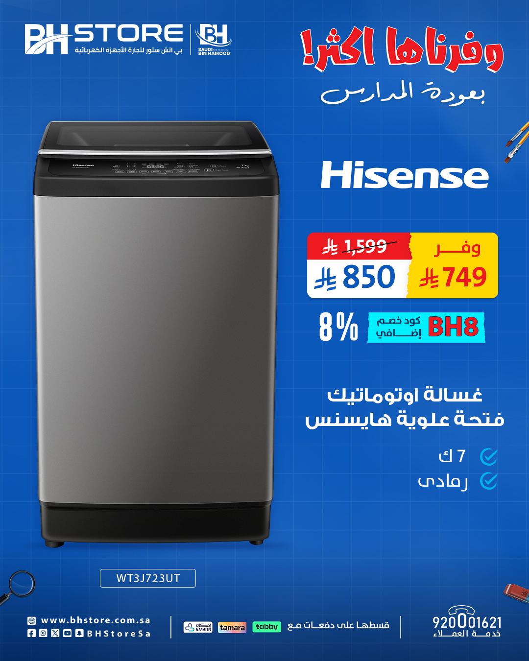 عروض بي اتش ستور لغسالات هايسنس والتي انطلقت لتمنح العملاء فرصة الاستفادة من خصومات حقيقية وأسعار خاصة تجعل اقتناء الأجهزة الأساسية أكثر سهولة وراحه لا تفوتوا التخفيضات في متاجرنا ضمن جميع الفروع