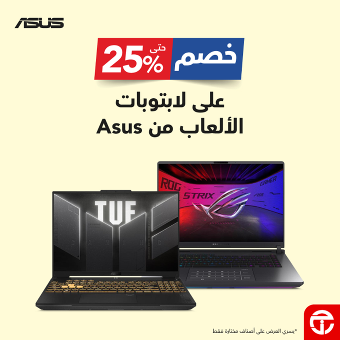 عروض جرير على لابتوبات الألعاب من ازوس بخصم يصل حتى 25% ساري حتى 19 فبراير 2026 منتجات متنوعة و لابتوبات بمواصفات عالمية و جودة لا تفوت من Asus العرض ساري من 8 فبراير حتى 19 فبراير 2026 فقط
