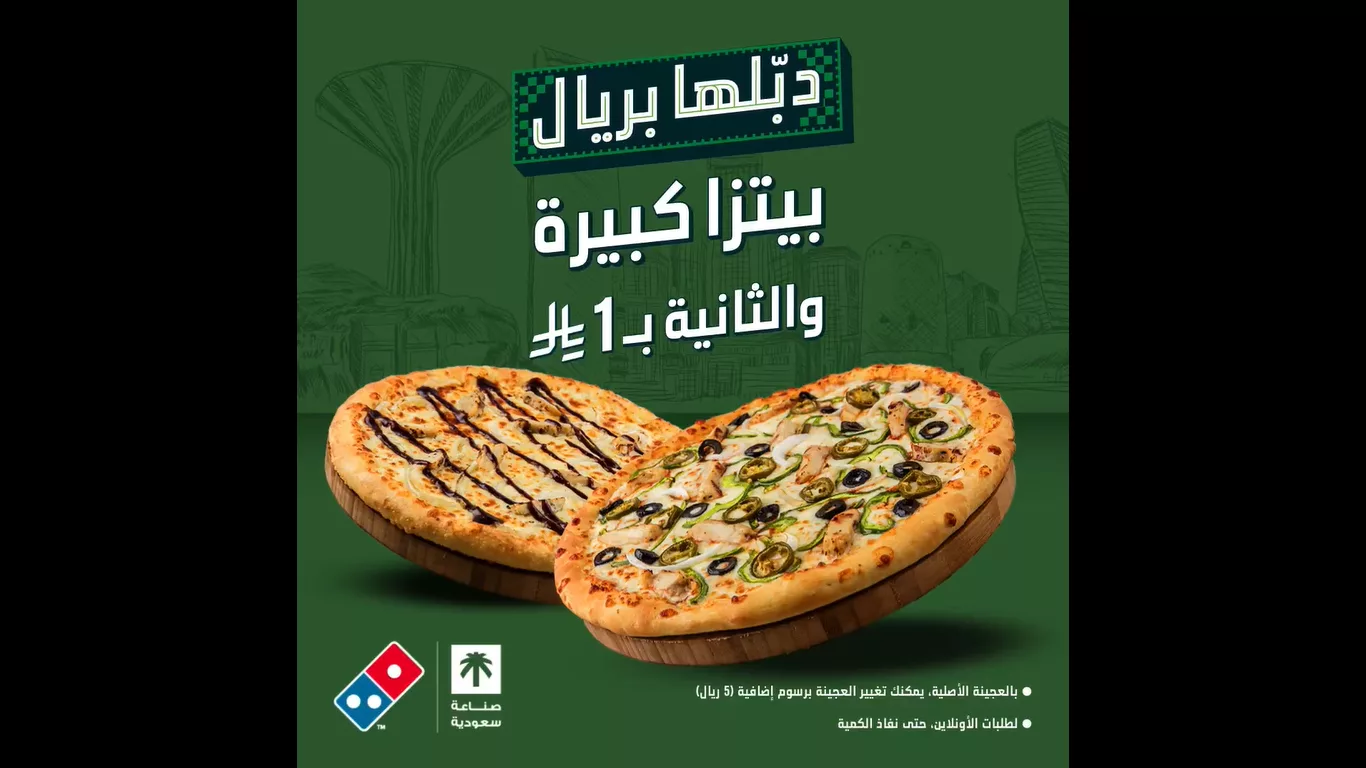 - اطلب بيتزا كبيرة من دومينوز بيتزا و خذ الثانية بريال واحد فقط