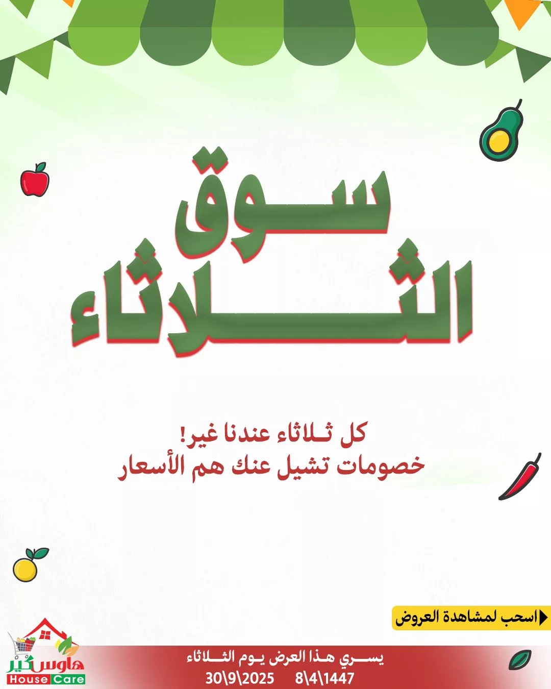 عروض سوق الثلاثاء الطازج من هاوس كير 30 سبتمبر 2025 افضل عروض الخضار و الطازج بأفضل الاسعار