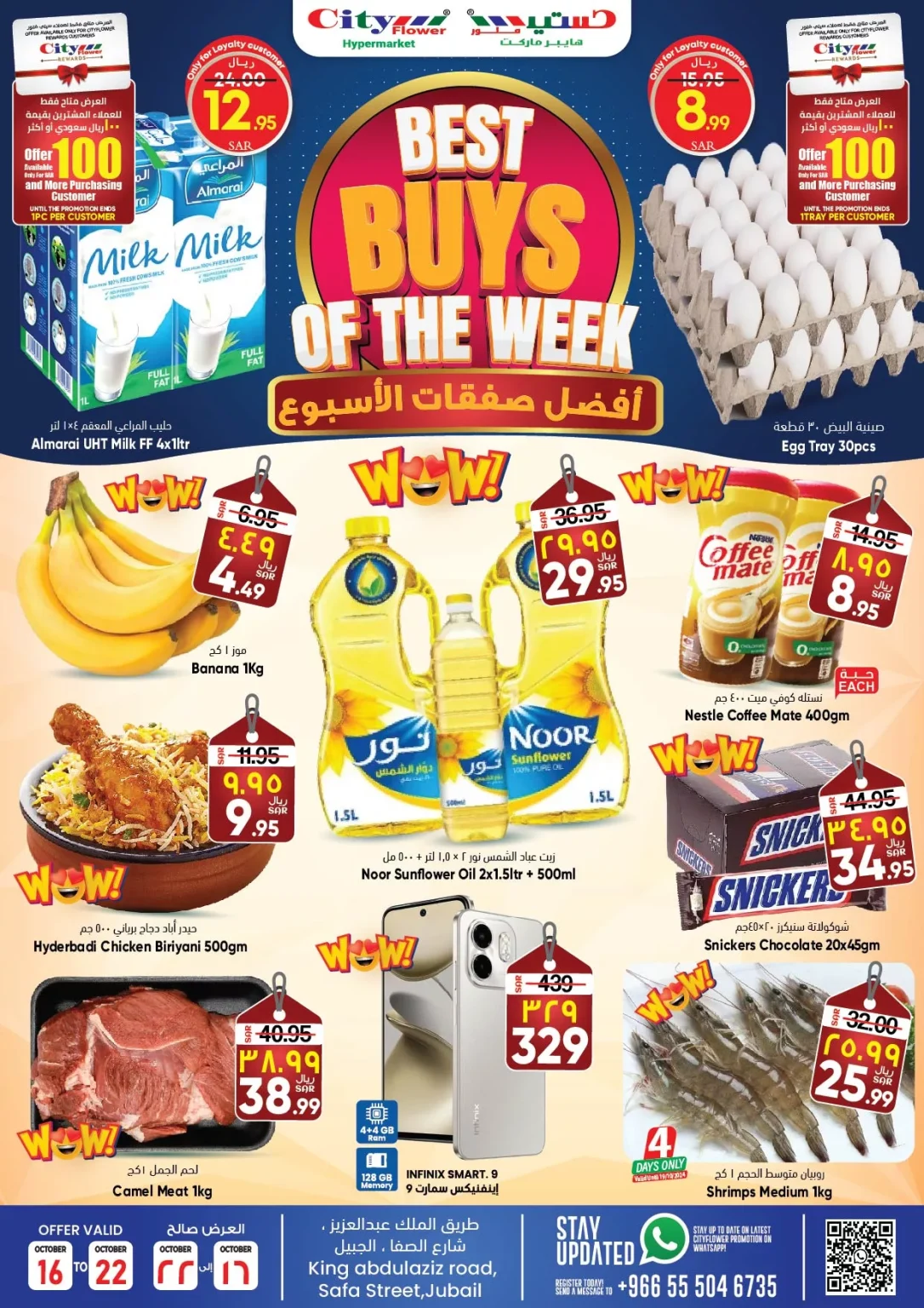 عروض سيتي فلور الجبيل لا تقتصر على الخضروات والفواكه فقط بل تشمل أيضا اللحوم والدواجن بأفضل الأسعار و يمكن للعملاء الاستفادة من العروض الخاصة على الكبدة ولحم الغنم ولحم الجمل بالإضافة إلى العروض الخاصة على منتجات الألبان والبيض والحلويات الشهية