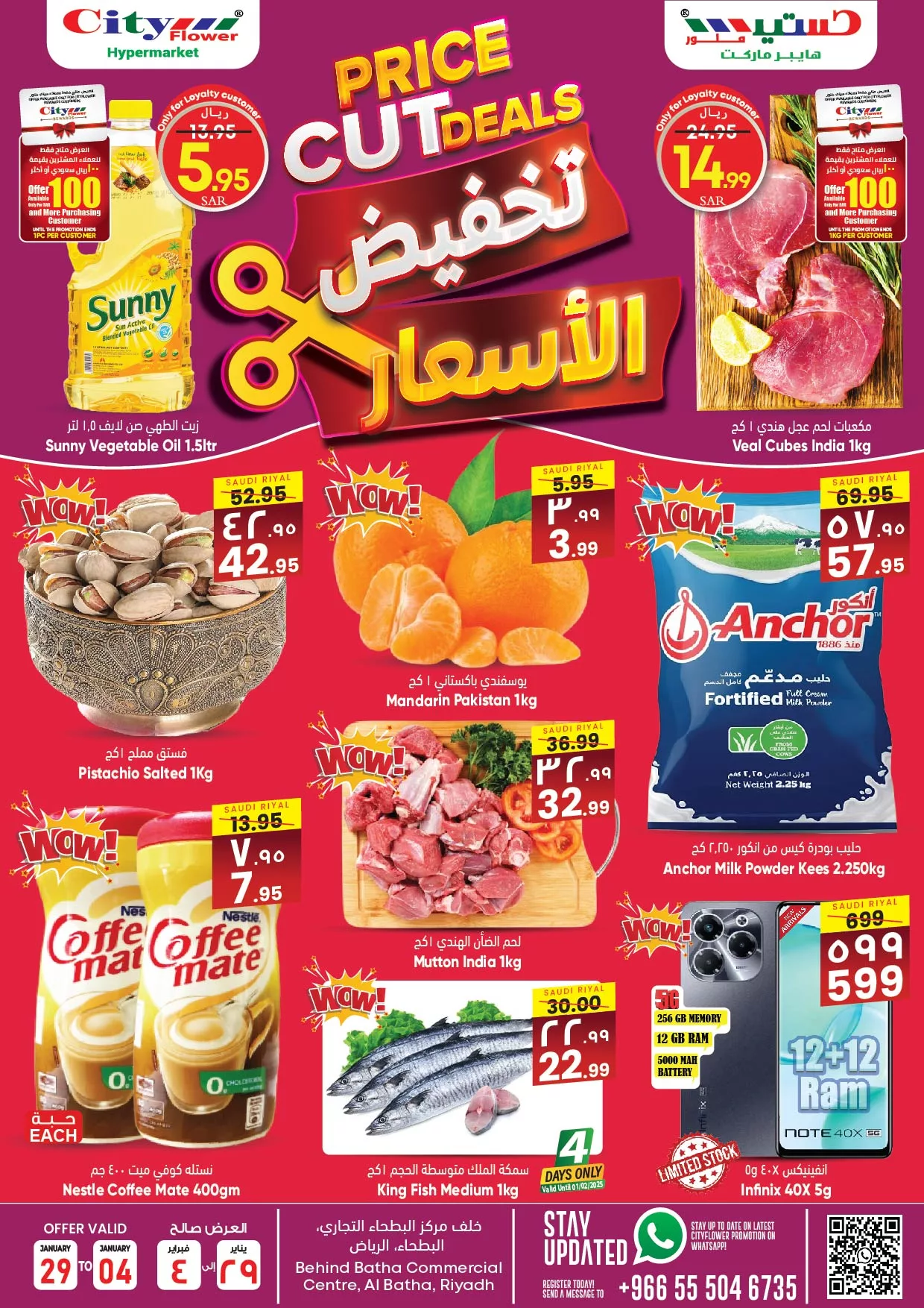 بالإضافة إلى الإلكترونيات تشمل عروض سيتي فلور الرياض خصومات كبيرة على المنتجات الغذائية الطازجة حيث يمكنك شراء أفضل أنواع اللحوم المستوردة والفواكه الطازجة بأسعار مذهلة سواء كنت تبحث عن لحم بقري برازيلي او كبدة بقري أو حتى أسماك طازجة مثل سمك التونة الأسود، فإن هذه العروض توفر لك كل هؤلاء باسعار تنافسية .