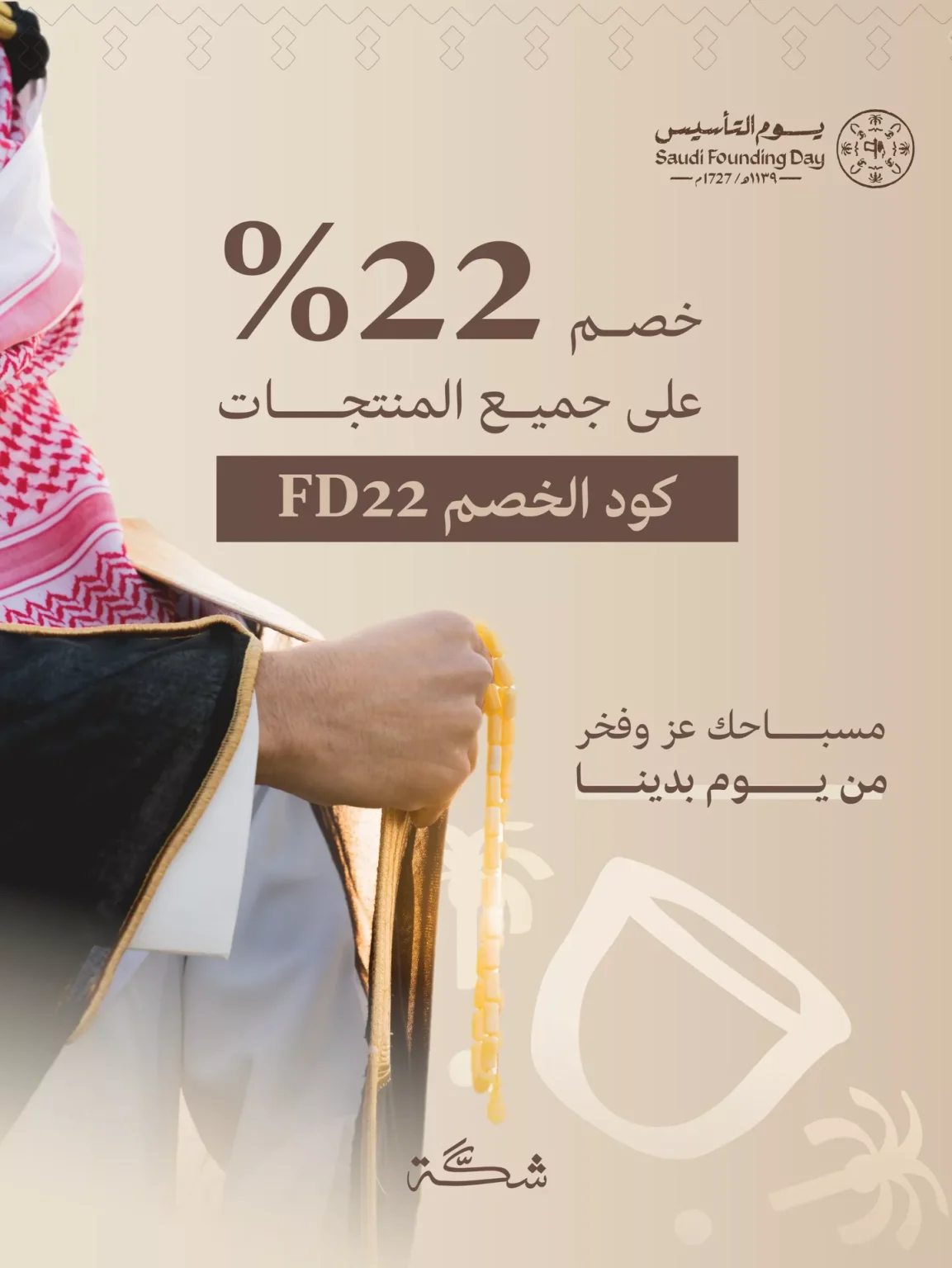 عروض شَكّة خصم 22% على جميع المنتجات بمناسبة يوم التأسيس