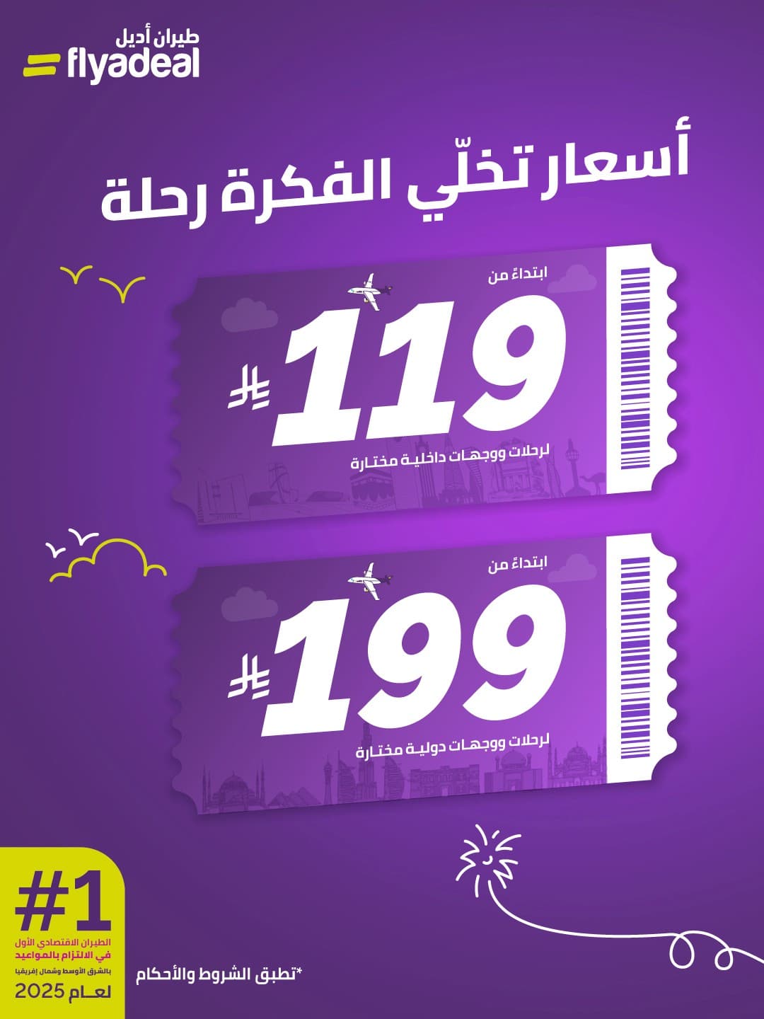 عروض طيران أديل على الرحلات الداخلية و الدولية 26 يناير 2026 افضل الاسعار المنافسة التي سوف تشاهدونها فقط في موقعكم عروض اليوم