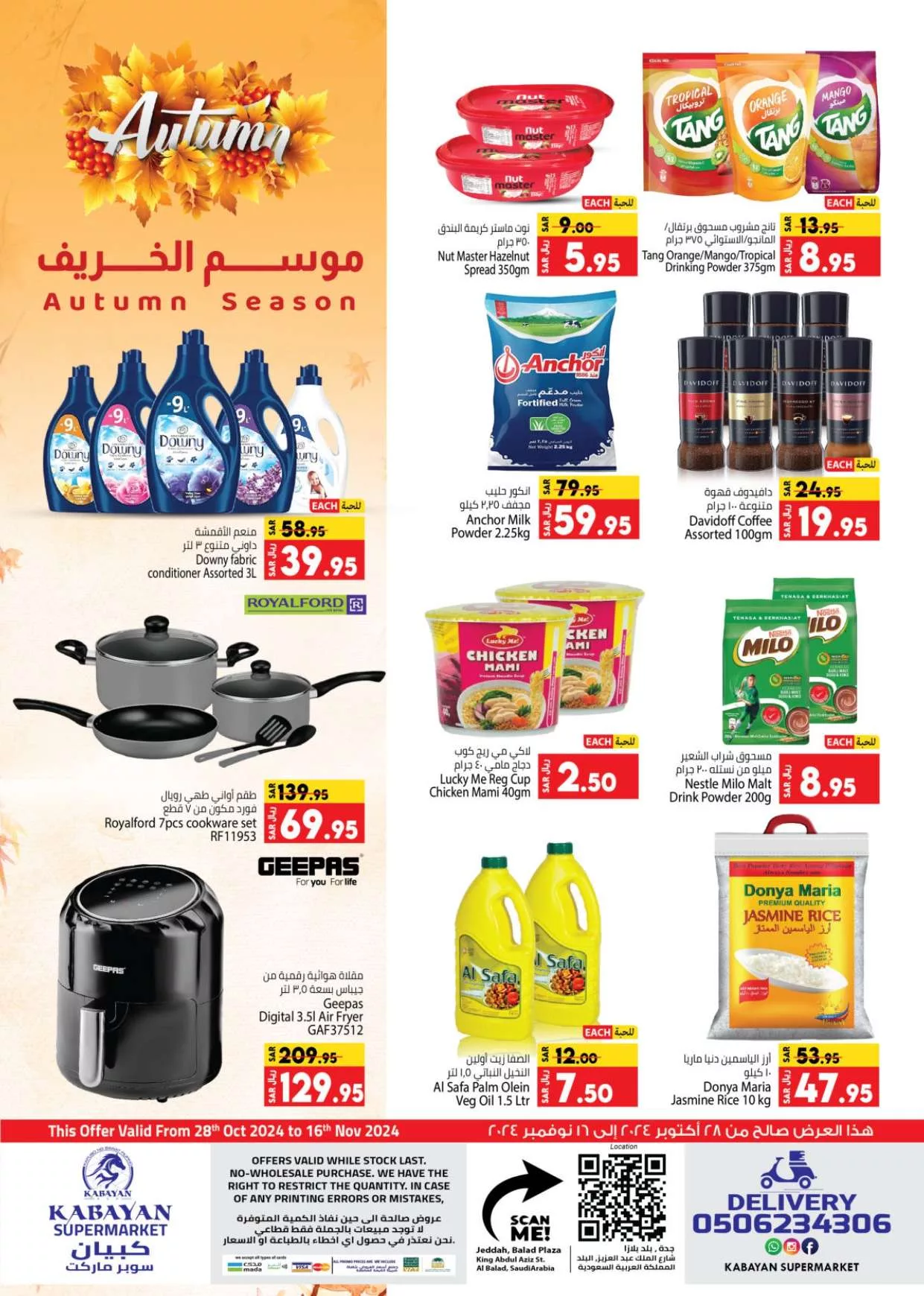 عروض كابيان السعودية تبرز مجموعة مميزة من المنتجات الغذائية بمختلف أنواعها. تتضمن العروض معطرات الأقمشة من داوني وحليب أنكور وقهوة دافيدوف إلى جانب مجموعة من المنتجات اليومية كالزيوت النباتية والأرز و هذه العروض متوفرة لفترة محدودة مما يجعلها فرصة مميزة للتسوق.