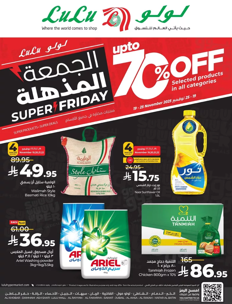 عروض لولو المنطقة الشرقية الأربعاء 28 جماد الاول 1447هـ تشمل المنتجات الغذائية مثل الكرنب اللولبي والبازلاء الحلوة والأناناس الكاريبي والتفاح الكندي والدجاج المقطع مع خبز الجاودار بتوفر كمان الأجهزة مع خلاطات قوية بأوعية زجاجية وشوايات كهربائية وأجهزة فرم يدوية كهربائية وقدور ضغط ذكية ومواقد طهي في تخفيضات الجمعة المذهلة