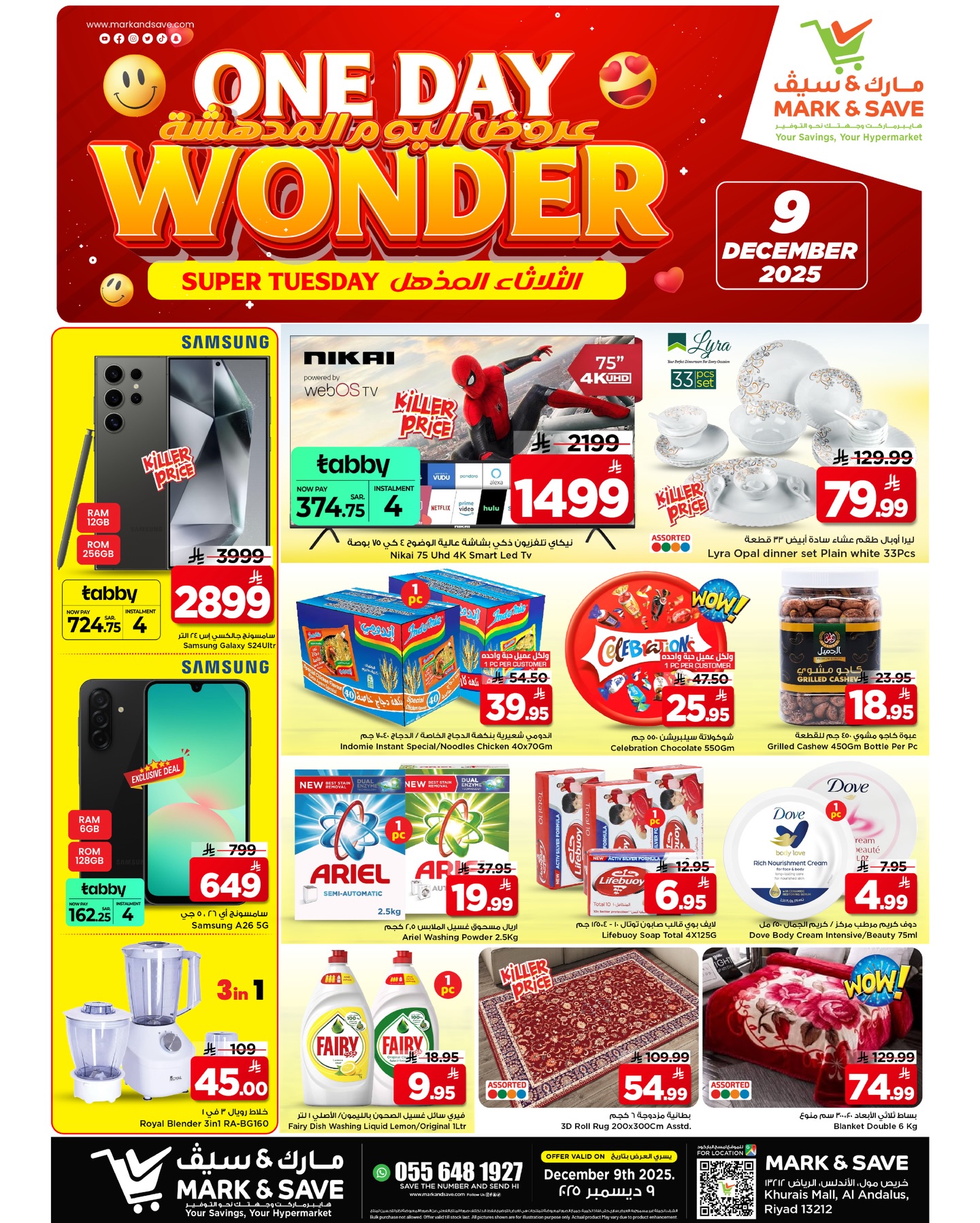 عروض مارك اند سيف الرياض بتقدم ليكم الثلاثاء 9 ديسمبر 2025 افضل المنتجات و تحتوي علي الإلكترونيات القوية مثل أجهزة التلفاز والهواتف الذكية إلى احتياجات المطبخ من الخلاطات والأواني والأدوات المنزلية و بتوفر كمان مساحيق الغسيل ومنتجات العناية بالمنزل والجسم إضافة إلى الحلويات والشوكولاتة والمواد الغذائية