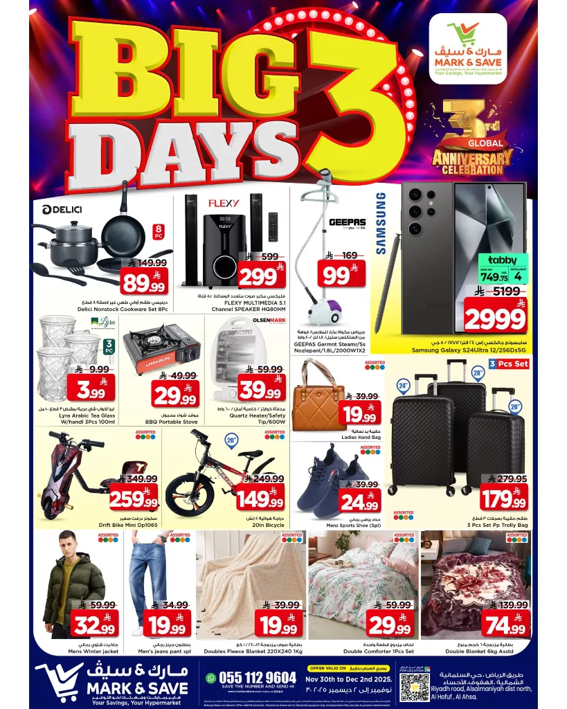 عروض مارك اند سيف صفقات كبيرة 3 أيام من 30 نوفمبر حتى 2 ديسمبر 2025 أقل الأسعار على الإطلاق و عروض لا يمكنك تفويتها و خصومات هائلة متوفر في جميع فروع مارك & سيف في جميع أنحاء المملكة العربية السعودية