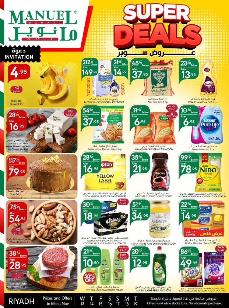 عروض مانويل الرياض تبدأ من الأربعاء 13 نوفمبر 2024، وتضم خصومات كبيرة على المنتجات الطازجة مثل اللحوم و الدواجن والخضروات إضافة إلى الأجبان والمعلبات التي تناسب ميزانية الجميع و ستجد في مانويل عروضا رائعة على الأطعمة الصحية كالحبوب والشوفان لتلبية خيارات غذائية متنوعة.